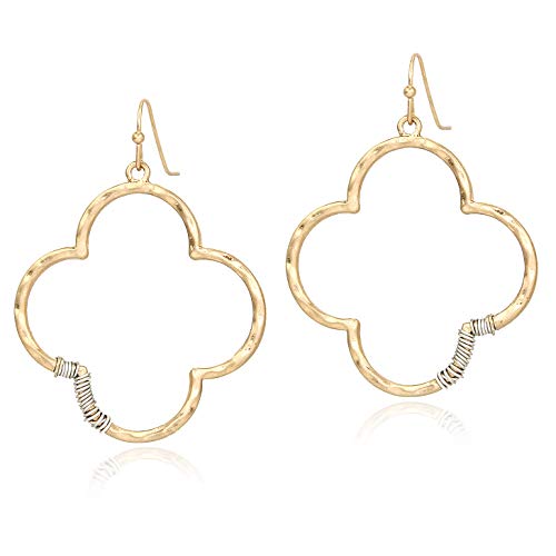 Pomina Wire Wrapped Hammered Clover Quatrefoil Dangle Drop Earrings for Women